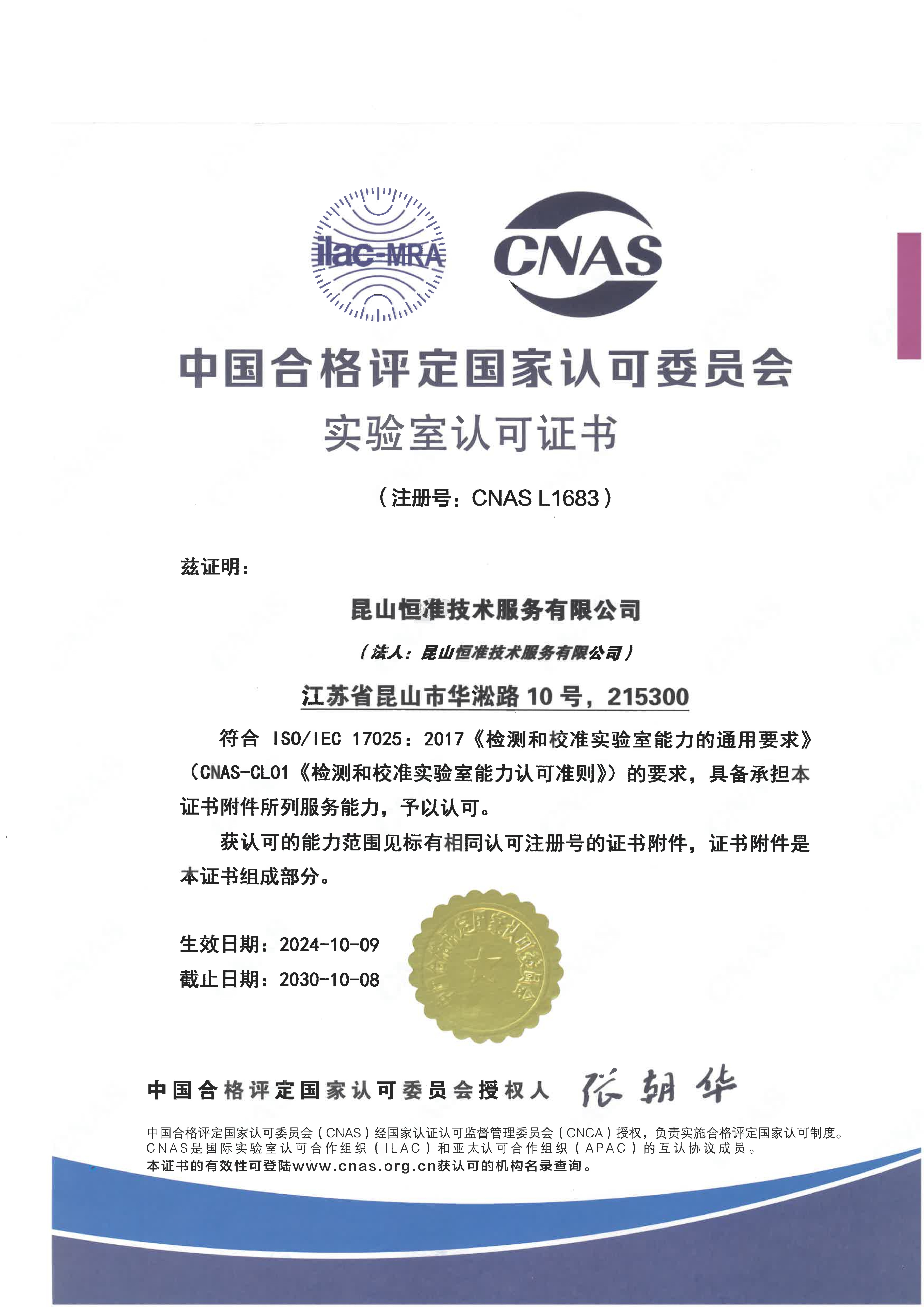 我司實驗室為中國合格評定國家認(rèn)可委員會CNAS認(rèn)可實驗室,校準(zhǔn)、檢測之管理技術(shù)均符合ISO/IEC 17025的要求,并承諾持續(xù)的改善管理體系和提升客戶滿意度。